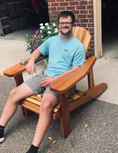 Chris relaxing in an Adirondack chair that he and Mitch crafted